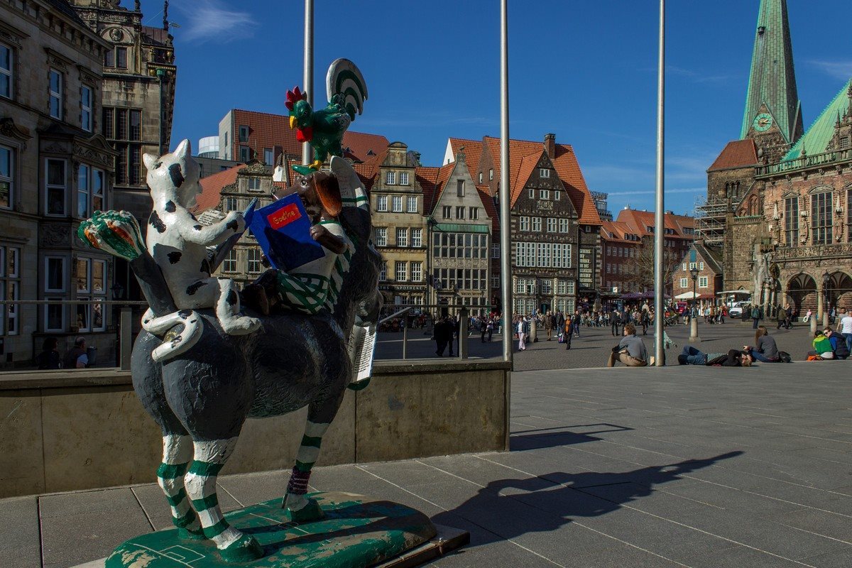 Памятник бременским музыкантам, созданный скульптором Герхардом Марксом и установленный в 1951 году, стоит в центре города Бремена и является символом города.