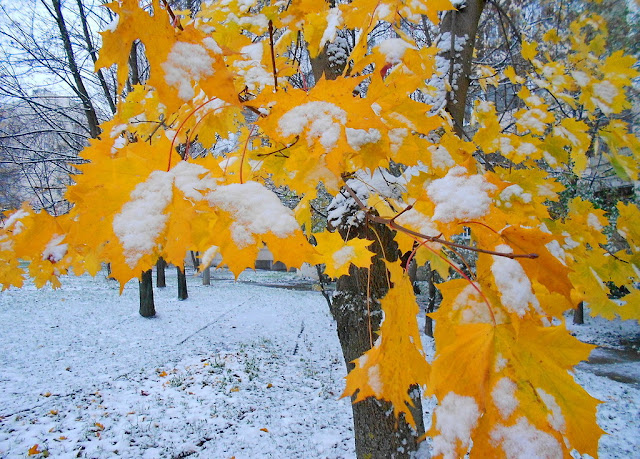 Два дня шел дождь....тихий, практически беззвучный...это Осень прощаясь, плакала прозрачными слезами...ей жаль уходить, но надо.... Рыжие пушистые косы красавицы Осени потускнели, потемнели, стали ржавыми...тихо ступая по мокрым дорожкам она оглядывает голые кусты и деревья, с которых проказник-ветер сбросил листья и разметал их вокруг..