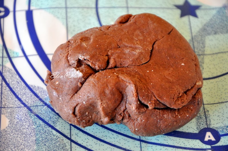 Холодное масло натереть на крупной терке и смешать с сахарной пудрой, яйцом, мукой, разрыхлителем, солью и какао. Хорошо вымесить тесто до однородности. Завернуть в пищевую пленку и убрать в холодильник на 2 часа. У меня тесто стояло ночь.