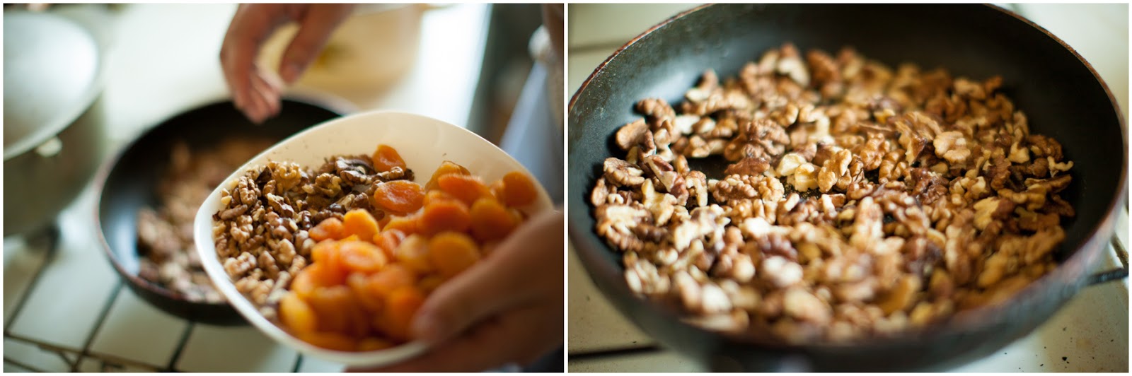 Как обычно в блюдах с использованием орехов, мы начинаем с их жарки.