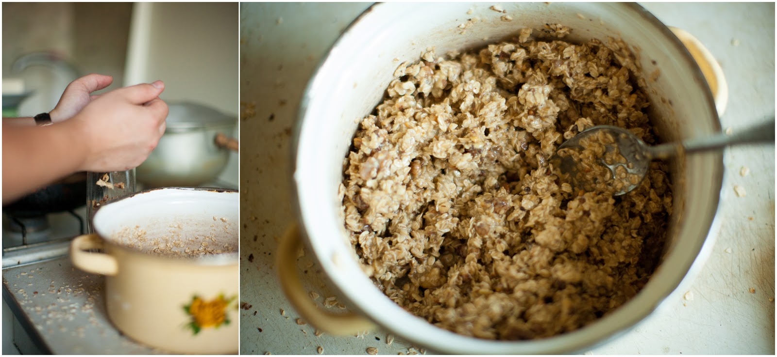 Так как хлопья мы не перемалываем в муку, готовое тесто может показаться густоватым. В принципе, для печенья это нормально, сильно твердым оно от этого не станет.