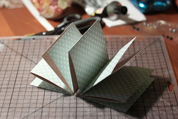 Склеиваем стороны гармошечки с изнанки и получаем готовую основу для нашего мини-миника аж на целых шесть разворотов. Я еще подровняла края сверху и снизу ножом по линейке.