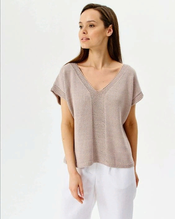 Топ выполнен в стиле оверсайз. Параметры изделия будут зависеть от попадания в заданную плотность, которая регулируется подбором размера спиц. Схема №1 топа (левая полочка) с детальными размерами, см: