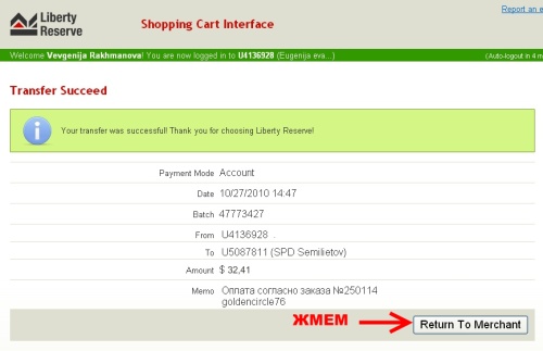 [показать] Если все правильно - завершаем платеж - жмем CONFIRMВсе замечательно - деньги с либерти вы отправили на свой внутренний счет MicsCapital