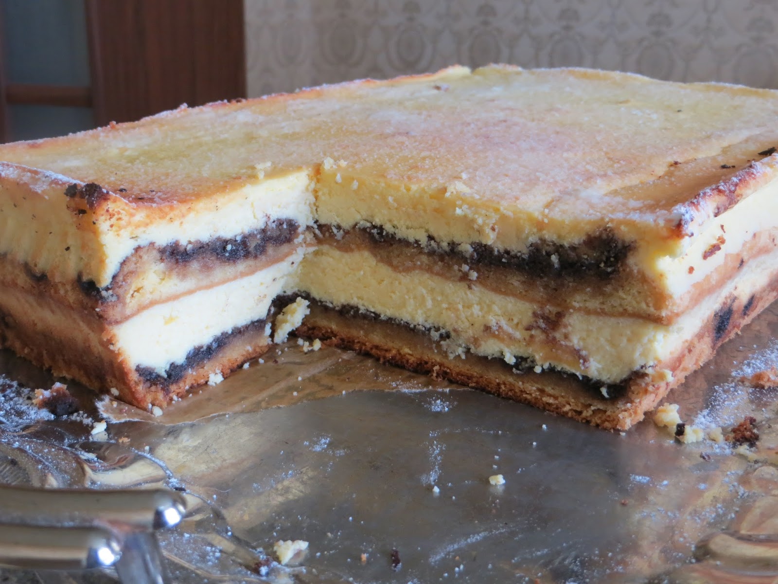 Маргарин, смешать с сахарной пудрой и растереть Постепенно добавить яичные желтки и творог, смешанные с пудингом. Белки взбить и осторожно смешать с сырной массой. Разделить на две части.