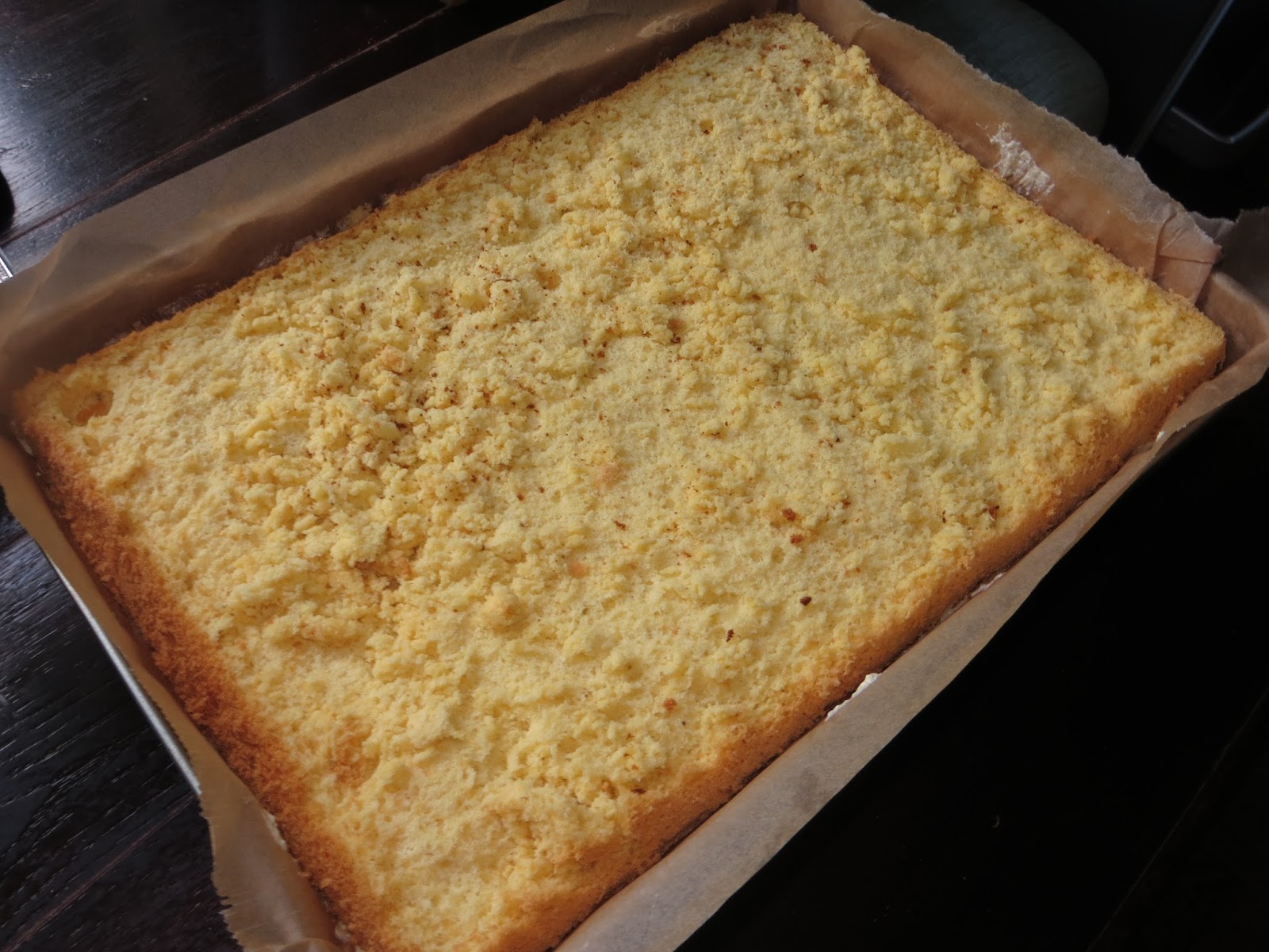 Белки были отделены от желтков ивзбить . В конце добавить сахар и взить в высокие пики Добавить яичные желтки и перемешать миксером на самой низкой скорости. Затем просеивают муку с разрыхлителем и осторожно, но тщательно перемешать. Выпекать в течение 35 минут при температуре. 175 градусов. Охладить Режем на две равные части
