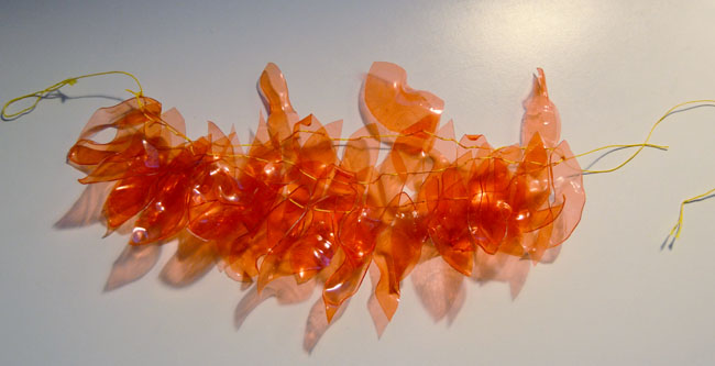 | Я пришила небольшой кусочек кожи на задней части цветка, а затем я вставил все цветы в кожаный поток |