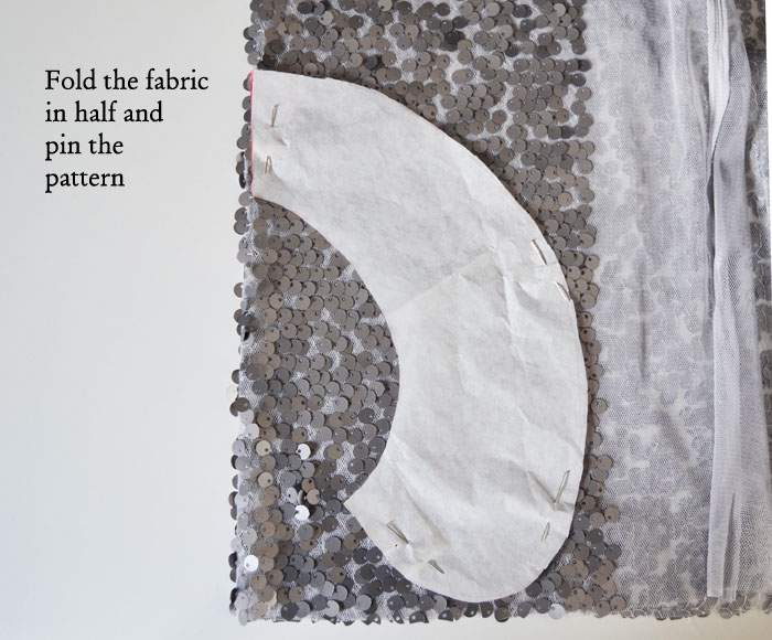 Сложите ткань пополам, сложить его снова в обратном направлении, мера 3 см с обеих сторон, нарезать его