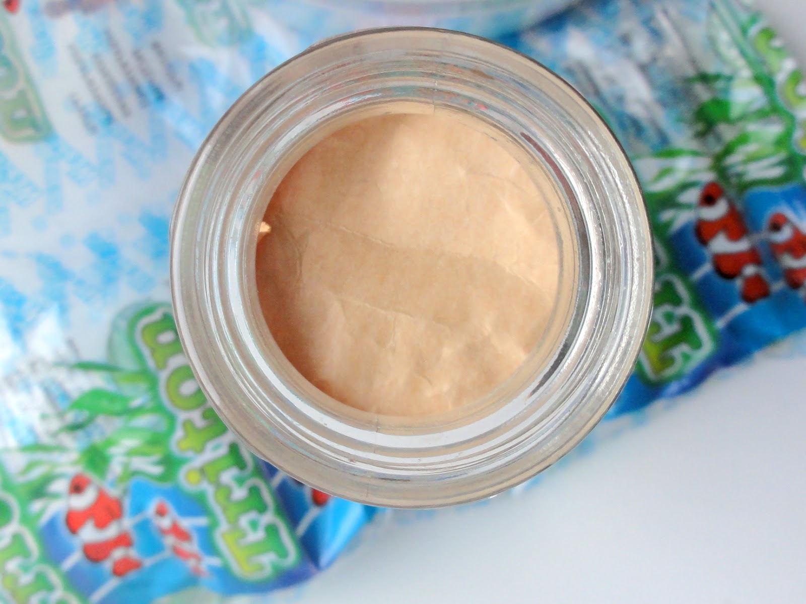 5. Вырезать из крафт-бумаги или картона круг и плотно уложить его поверх наполнителя. Здесь самое сложное - угадать нужный диаметр круга, так как если кружок будет великоват, его будет тяжело поместить в бутылочку через сужающееся горлышко и распределить по поверхности, появятся ненужные складки. Кружок меньшего диаметра не сможет препятствовать протеканию парафина внутрь композиции. В общем, если вы не обладаете идеально точным глазомером, то придется определять необходимый размер опытным путем))