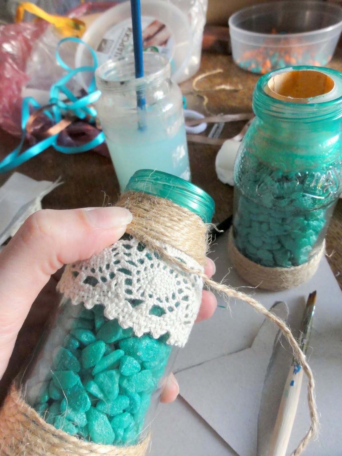 - цветные камешки или кварцевый цветной наполнитель - можно найти в специализированных магазинах для творчества или, как я, купить в зоомагазине камешки для аквариумов))