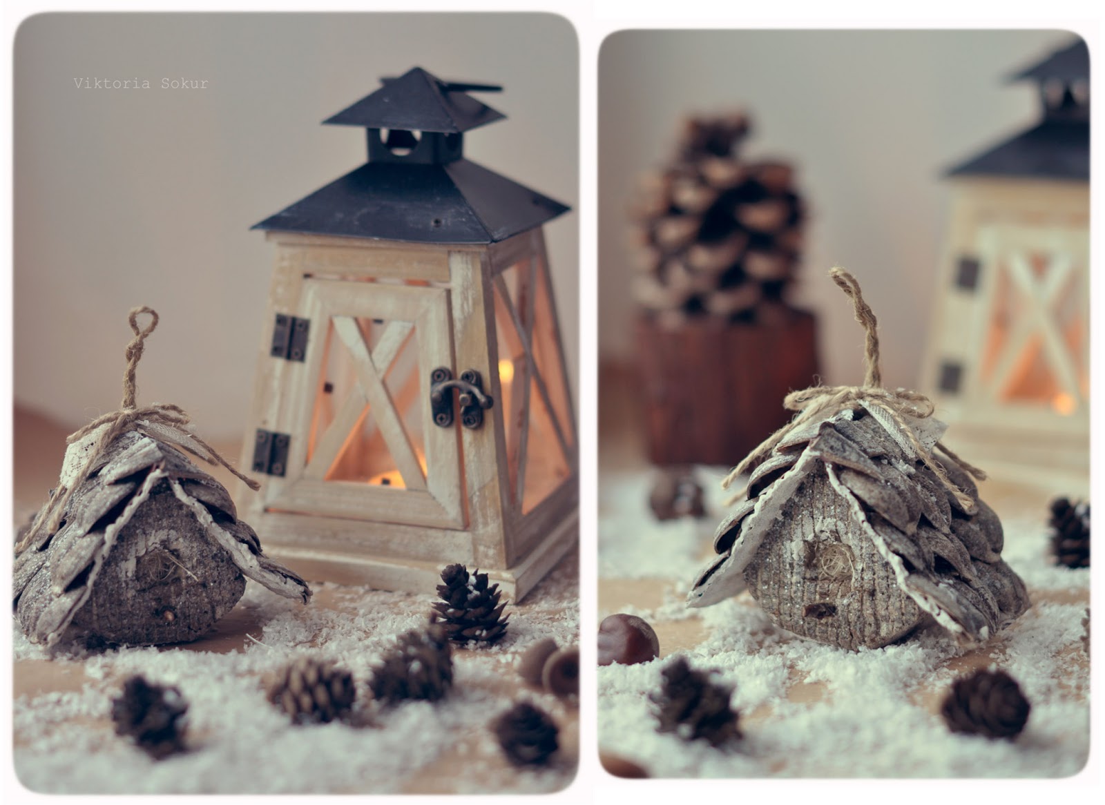 Эта ёлочка была сделана из натуральных материалов,которые я очень люблю.Тут есть и скорлупа ореха,и жёлуди,и каштаны,и шишки,а всему этому очарования добавляют бусы и бантики и ёлочные шарики.Ну,и конечно снег ...