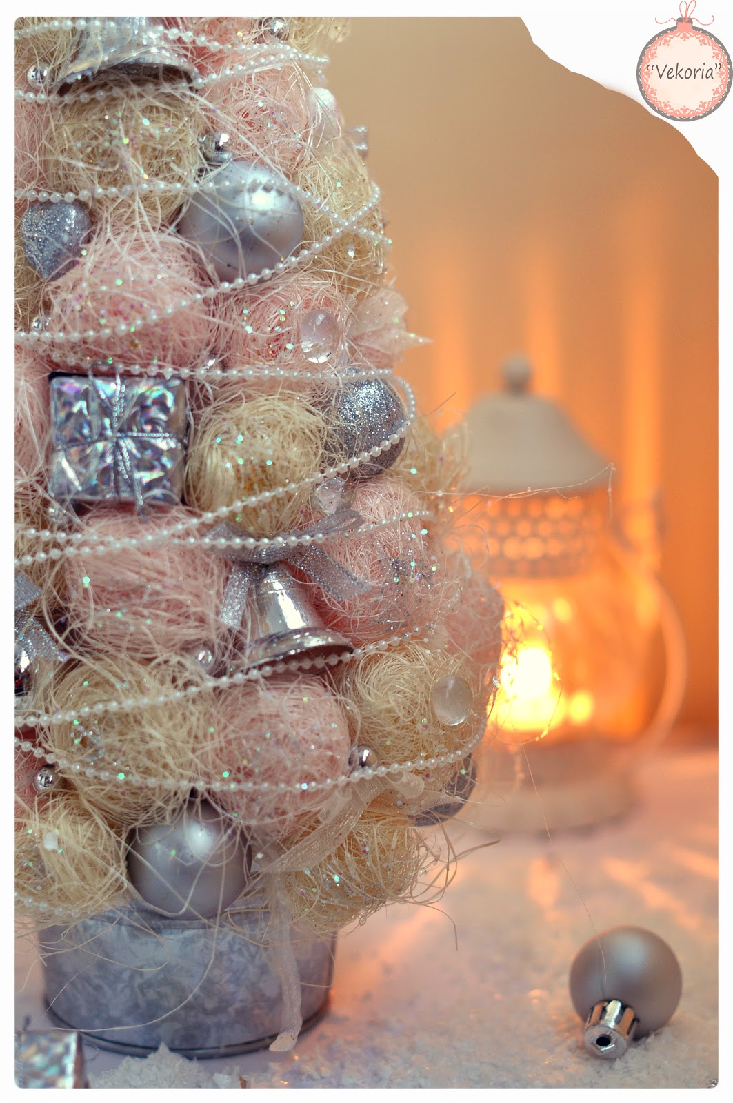 Захотелось сделать ёлочку в нежных цветах,с имитировать снег на ёлке,добавить цветы.