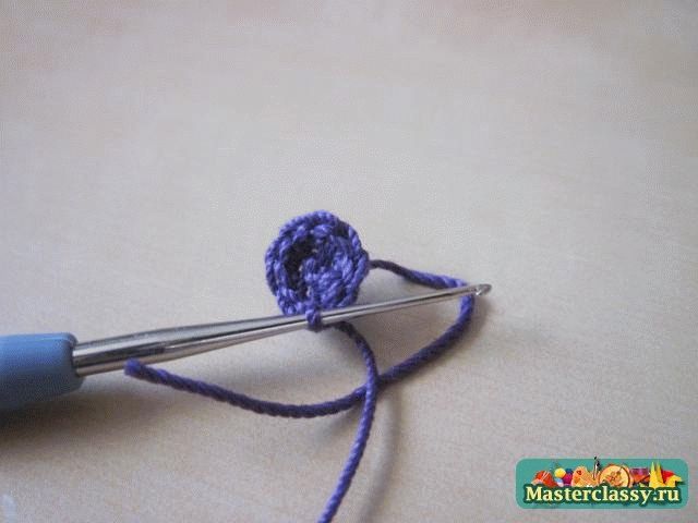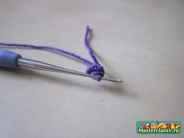 Приступаем к вязке листочков и веточки баклажанчика. Для этого набираем 4 воздушные петли и замыкаем их в круг.