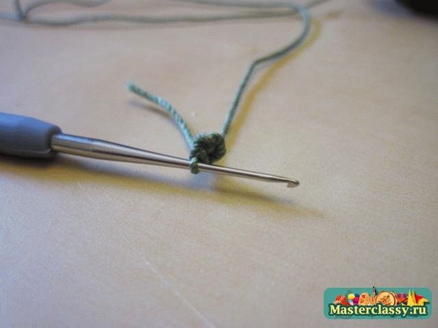 Третий ряд провязывается последовательностью (обозначения сбн – столбик без накида) – 1 сбн, 1 сбн, 2 сбн в петлю цепочки предыдущего ряда.