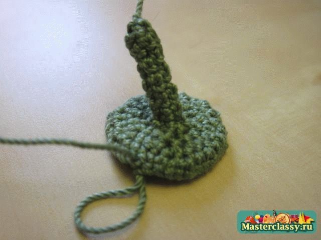 Затем провязываем столбиками без накида по спирали небольшую веточку.