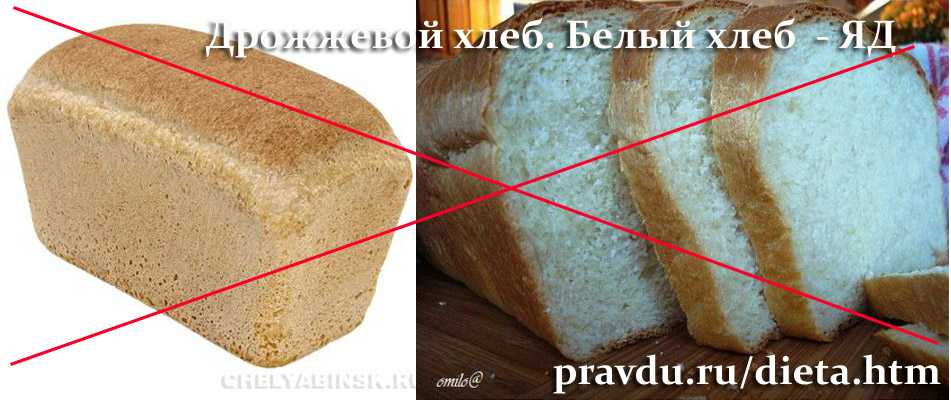 Употребляя дрожжевой хлеб, Вы кушаете грибы. Предпочтение нужно отдавать ржаному хлебу. Рафинированная белая мука высших сортов, как и другие рафинированные продукты, уверенно входит в топ вредных продуктов питания. "Нарезной батон” не является полноценным хлебом. Это "сдоба”, со всеми вытекающими.