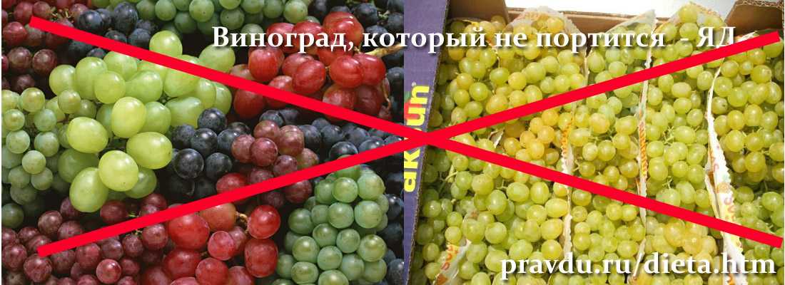 Виноград съедают грибы на корню. Его еще не успели снять с ветки, а его уже едят грибы. Поэтому если продается какой-нибудь там кыш-мыш и лежит более 5 суток, знайте, он обработан хлороформом и другими серьезными антиокислителями.