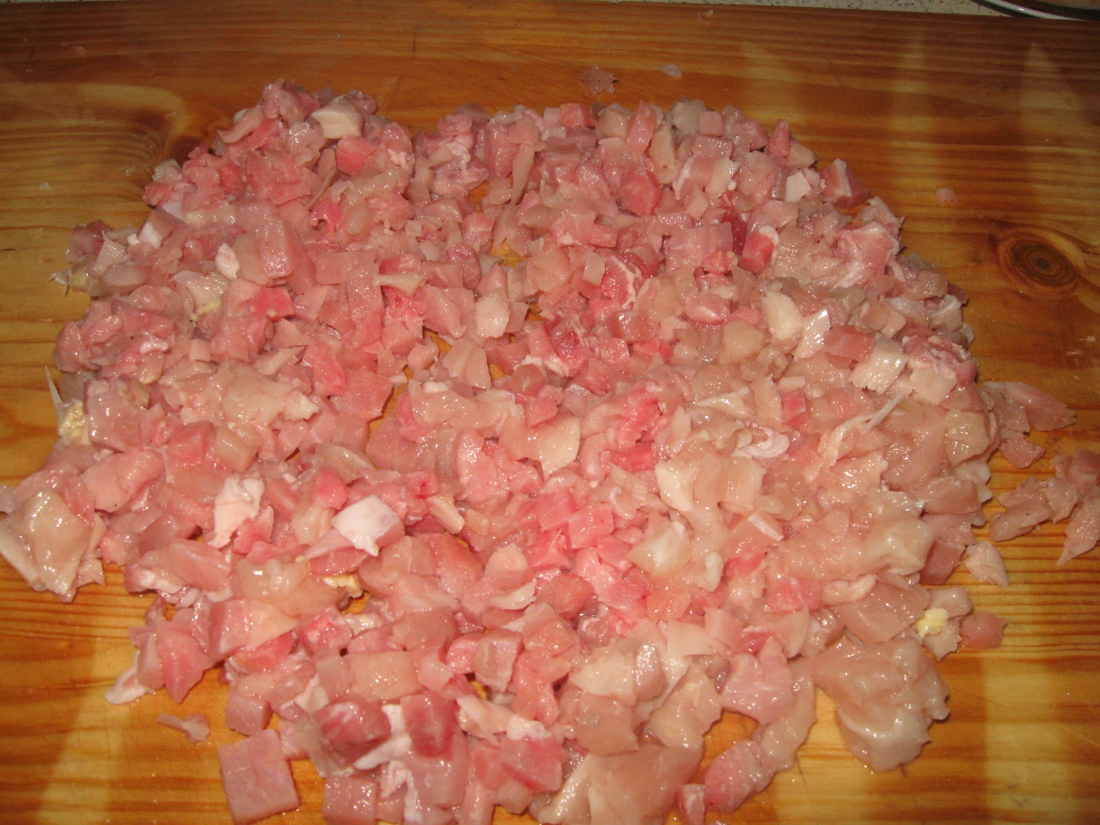 Мясо порубить на мелкие кубики.