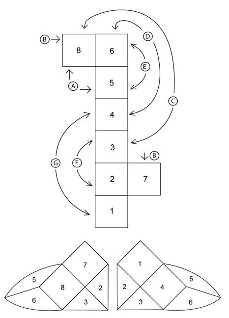 Для вязания квадратов 7 и 8 необходимо набрать по 15 петель из вязаного полотна на нужном уровне и провязать 24 ряда платочной вязкой.