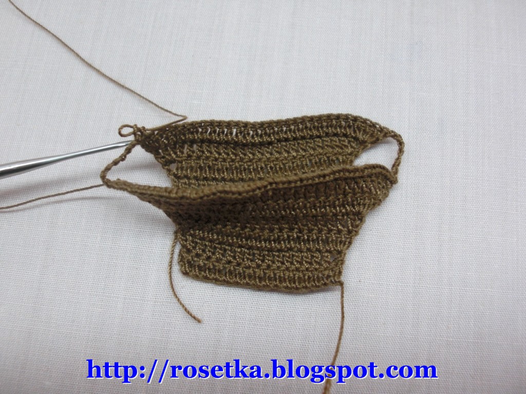 Вторую деталь кокетки вяжем аналогично, в конце нить НЕ отрезаем. Продолжаем вязание. Цепочка из 7 Вп.