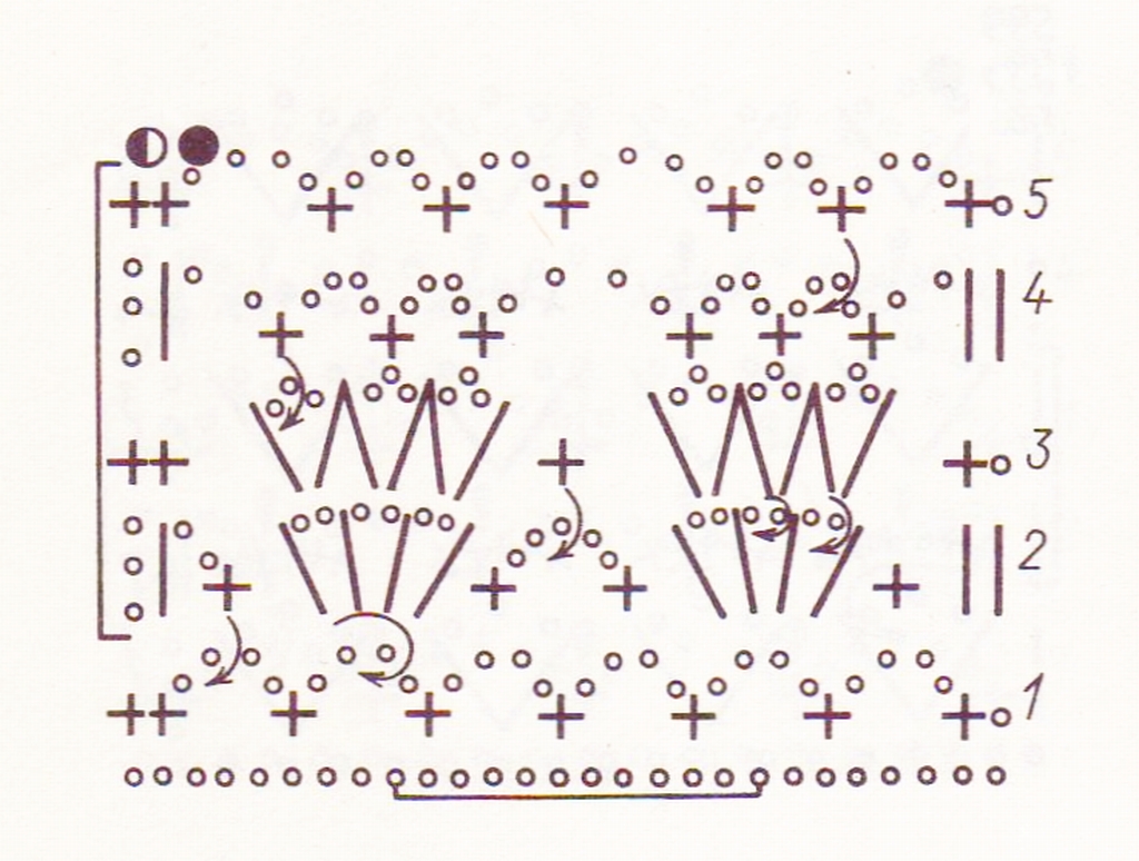 Вяжем вновь цепочку из 45-50Вп для второй бретельки и т.д. продолжаем вязание по кругу.