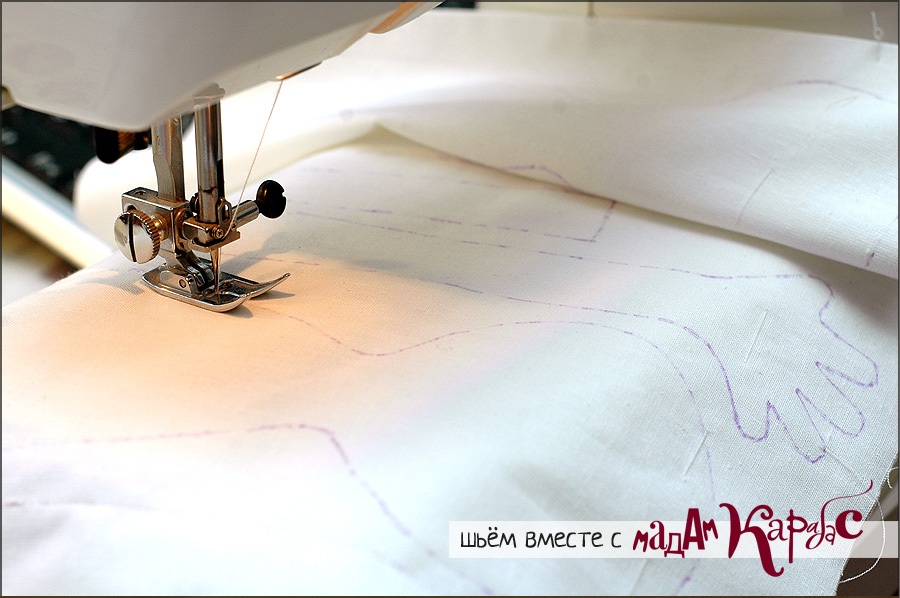 Ничего не вырезаем! Перенесли все контуры на ткань и идем к швейной машинке.