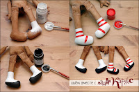 В конце работы можно носки и ботинки протереть мелкой шкуркой. Чтоб акриловое покрытие не выглядело таким новым, мы ж шьем примитивную куклу и старим её. А у старой куклы не должны быть такие новые ботинки!