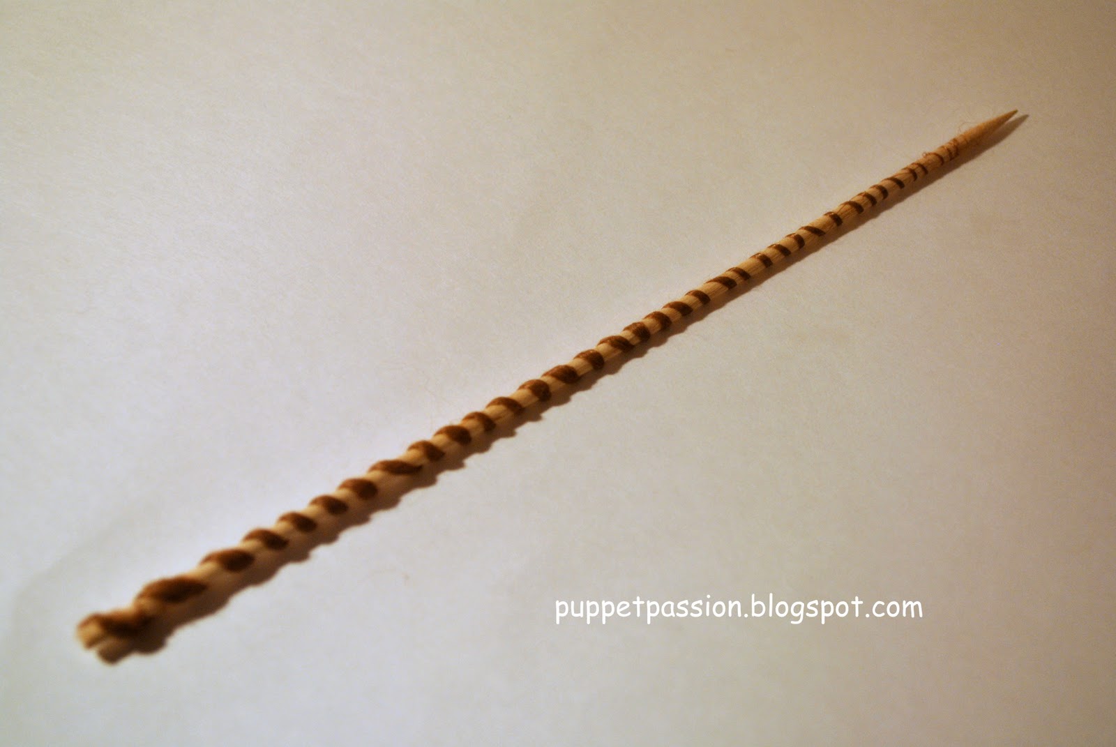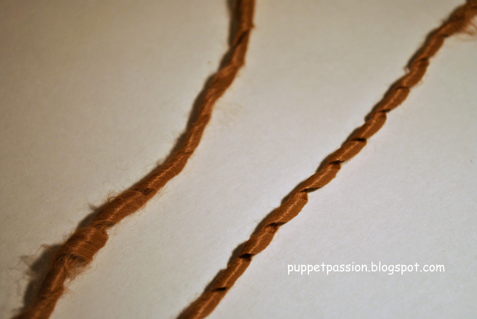 1. Отрезаю от шерстяной "ленты" кусок нужной мне длины - это немного длиннее, чем шампур.