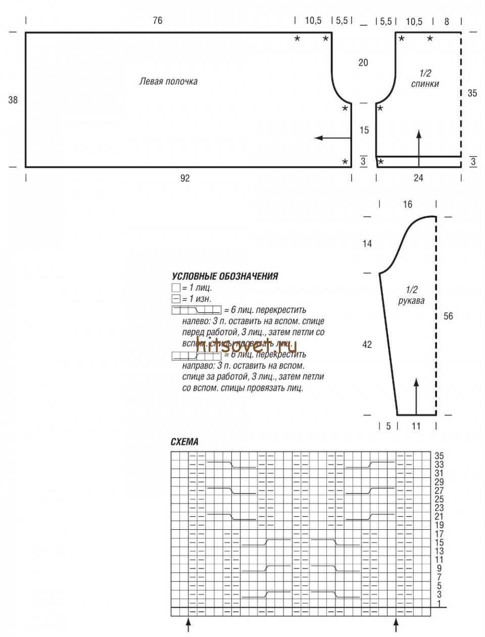Через 76 см или 190 рядов от отметки все петли закрыть по рисунку.