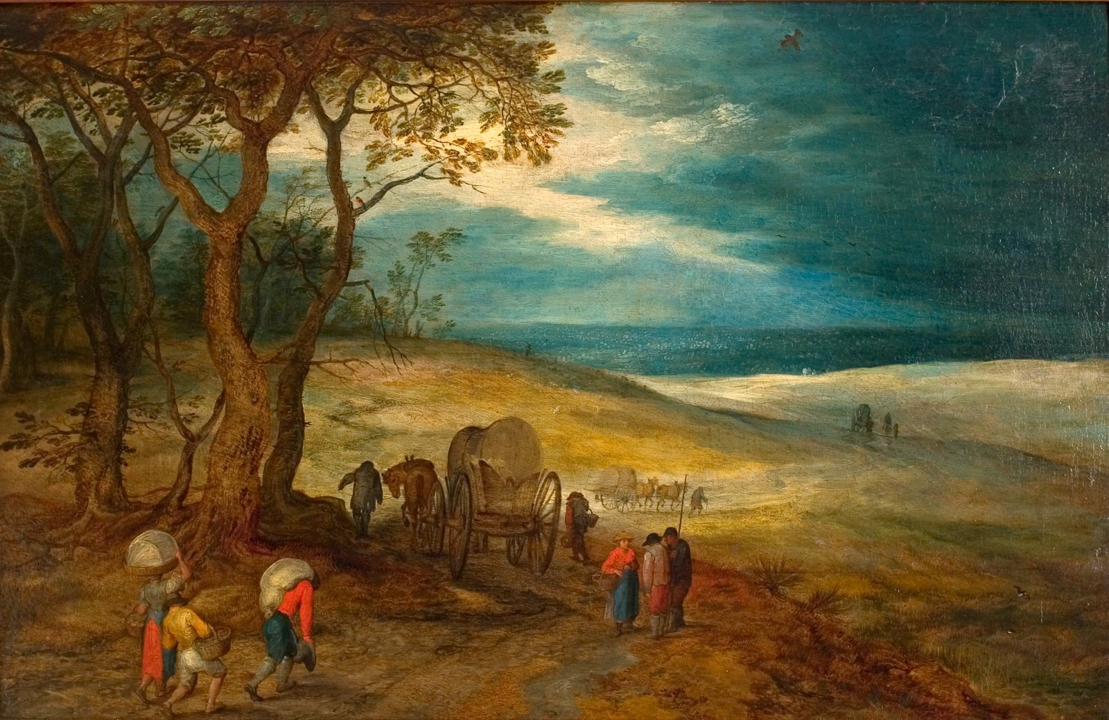 Холмистый пейзаж с путешественниками и повозками (Hilly landscape with travelers and wagons)_ок.1610_36.5 х 56.9_д.,м._Амстердам, Рейксмузеум