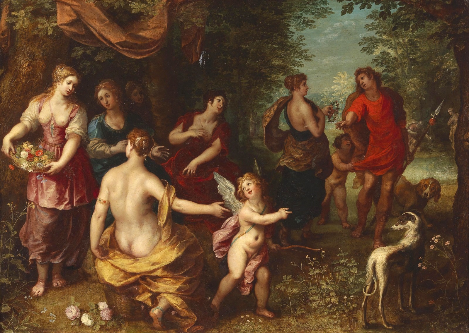 Венера и Адонис (Venus and Adonis) (совместно с Хендриком ван Баленом Ст)_49.7 х 69.5_медь, масло_Частное собрание