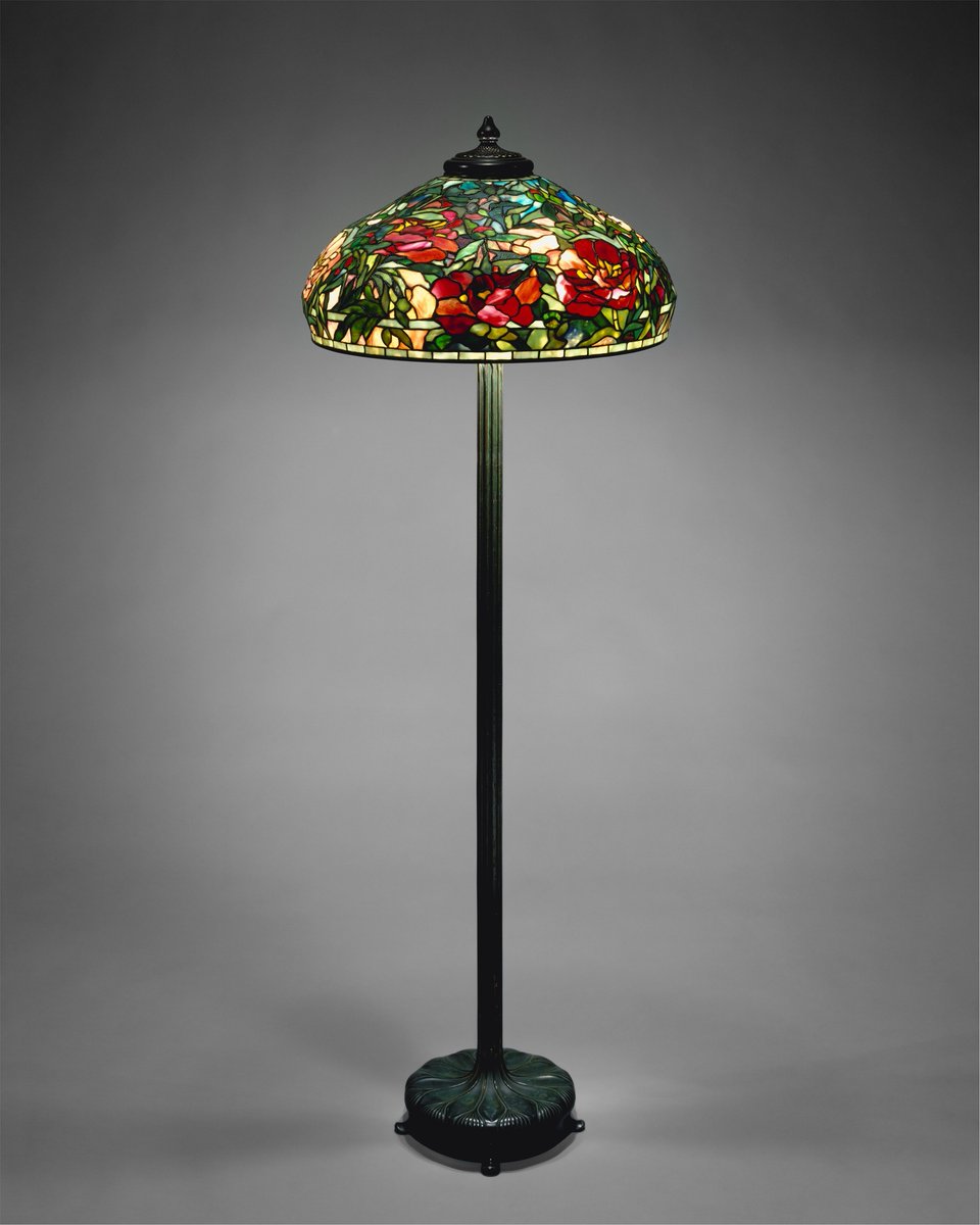 Настольная лампа «Пион» с разработанным Кларой Дрисколл абажуром. База «Крабы» находилась в производстве фирмы с 1898 г. и была сделана для газового освещения.