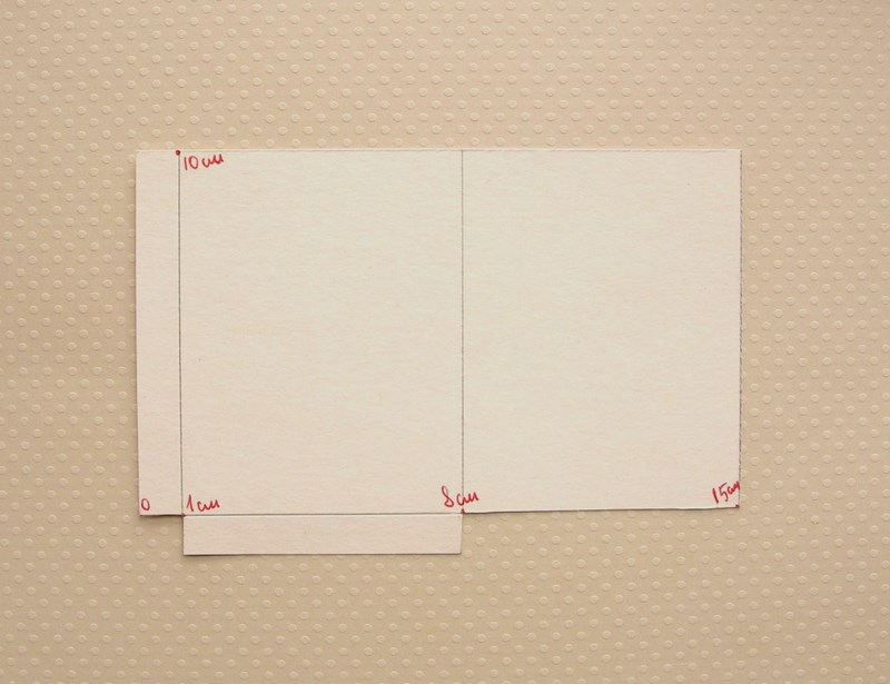 Шаг 3. Теперь склеим кармашки. Обратите внимание, что вертикальный выступ загибается и приклеивается внутрь кармашка, а горизонтальный - снаружи. Если его приклеить внутрь, то наверняка карточка будет постоянно