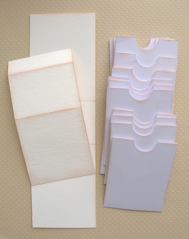 Делаем полукруглые вырезы на кармашках. Слегка тонируем все детали папки.