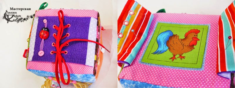 3. Гараж-шнуровка. За створками прячется петушок, божья коровка бегает вверх-вниз по ленточке.