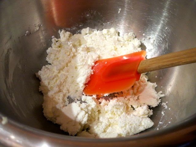 Готовим тесто. Смешиваем творог с яйцом, солью, сахаром и содой, растираем смесь.
