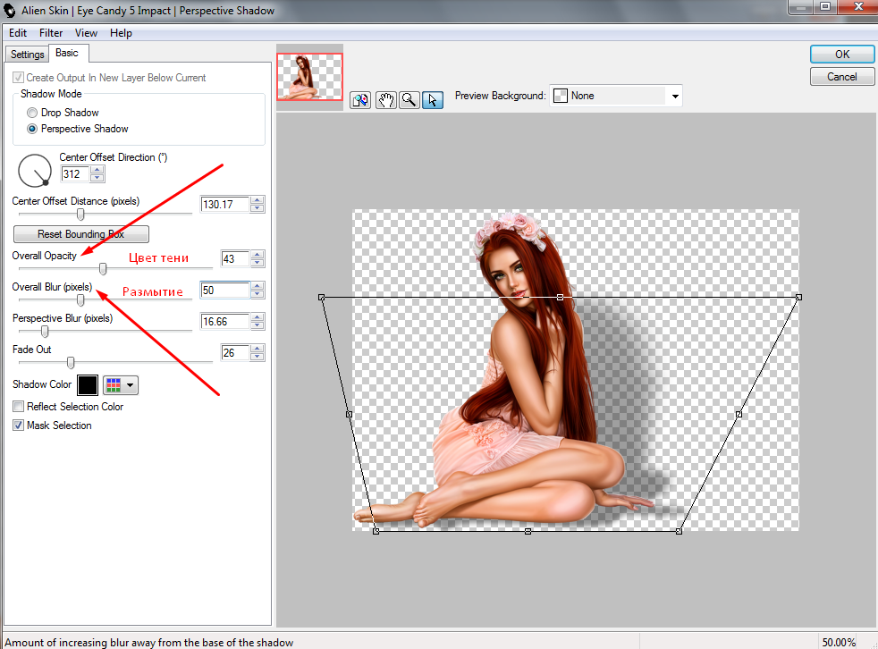 Если девушка стоит у стены можно сделать и прямую тень за ней...