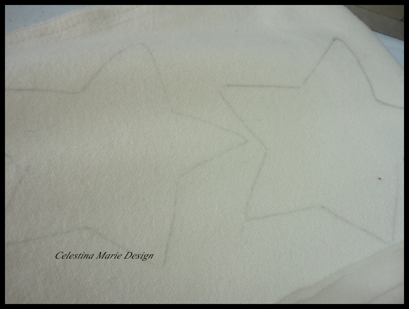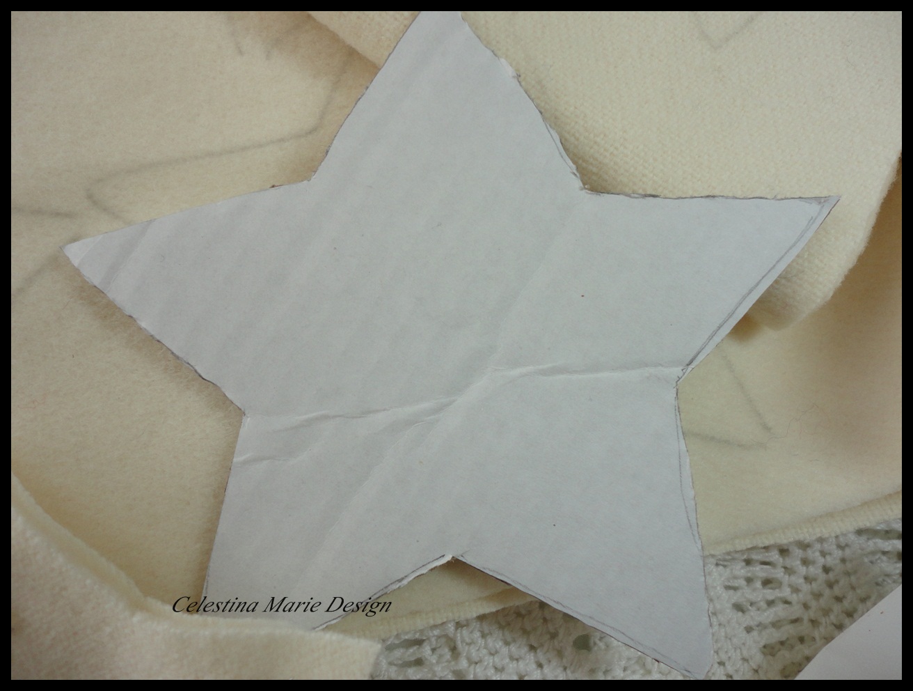Далее нам нужно будет звездой картины. Я использовал звезду и сделала картонный шаблон, чтобы перевести на ткань перед нарезкой.