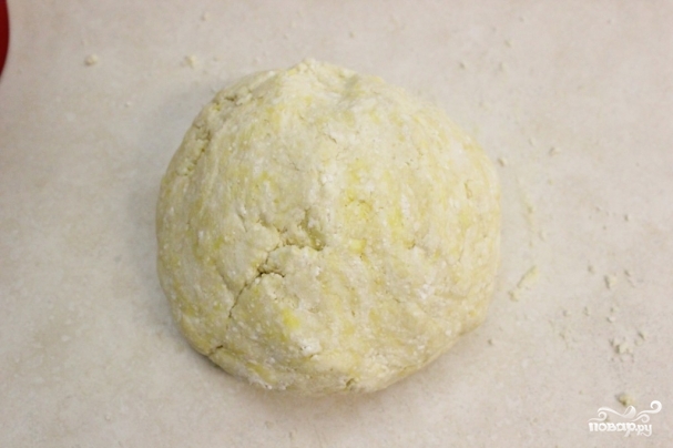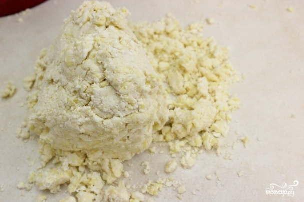 6. Замесите тесто. Сначала оно будет разваливаться, но потом (когда масло растает) станет достаточно крутым.