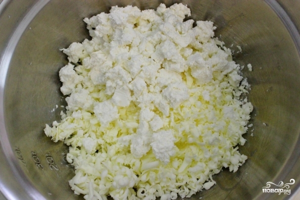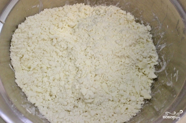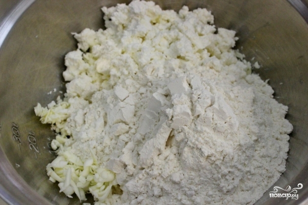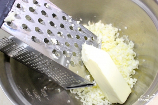 1. Масло нам понадобится замороженное. Натрите его в миску на свекольной терке. Так легче будет замесить тесто.