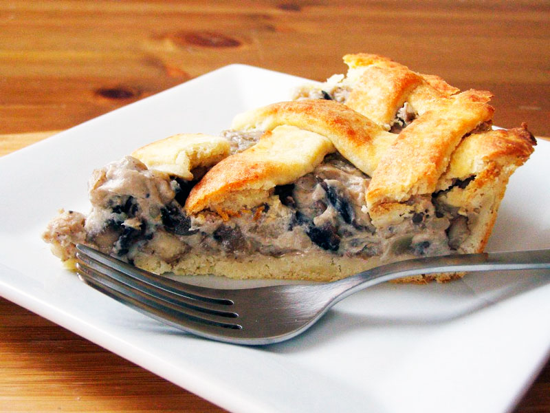 Сверху пирог смазать маслом и проткнуть в нескольких местах вилкой. Выпекать в духовке минут 40 при температуре 180 градусов.