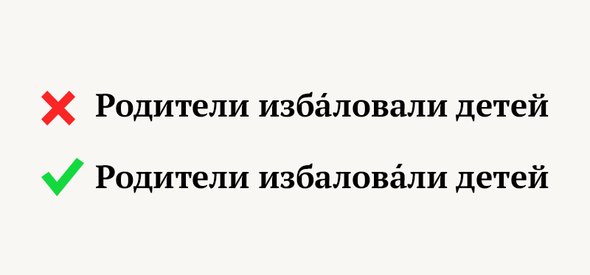 Дети сами балуются. Да и родители балуют детей, даже если клятвенно обещают быть строгими ребятами. Вопрос в другом: как произносить — избаловАть или избАловать? Если вдруг вы вспомнили коронное «А мы тут плюшками бАлуемся» от Карлсона — срочно забудьте. К сожалению, Карлсон ошибся. Ударение в этом глаголе нужно ставить на третий или второй слог — баловАть, балУю, баловАл — независимо от значения слова: шалить или изнеживать. Это литературный вариант произношения, зафиксированный орфоэпическими словарями. Распространённый вариант с ударением на «а» тоже встречается в словарях, но с пометкой «не рекомендуется». Ещё раз: «Детей не стоит баловАть» и «Ты сильно его балУешь». А вот о человеке правильно говорить «балОванный» или «избалОванный».