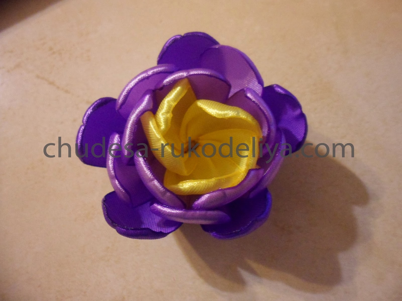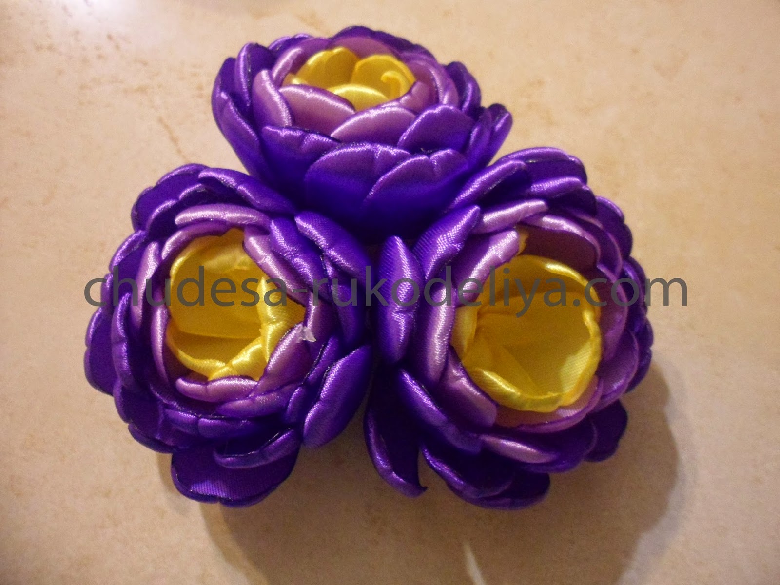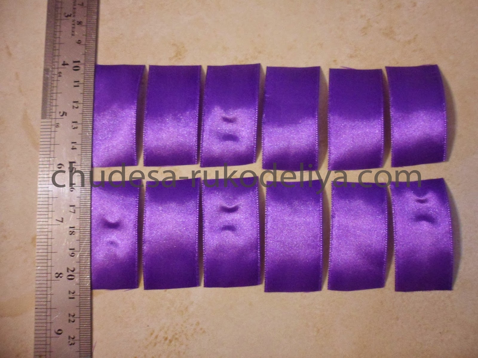 Для внешних лепестков-фиолетовая лента, длиной 5 см-15 шт.