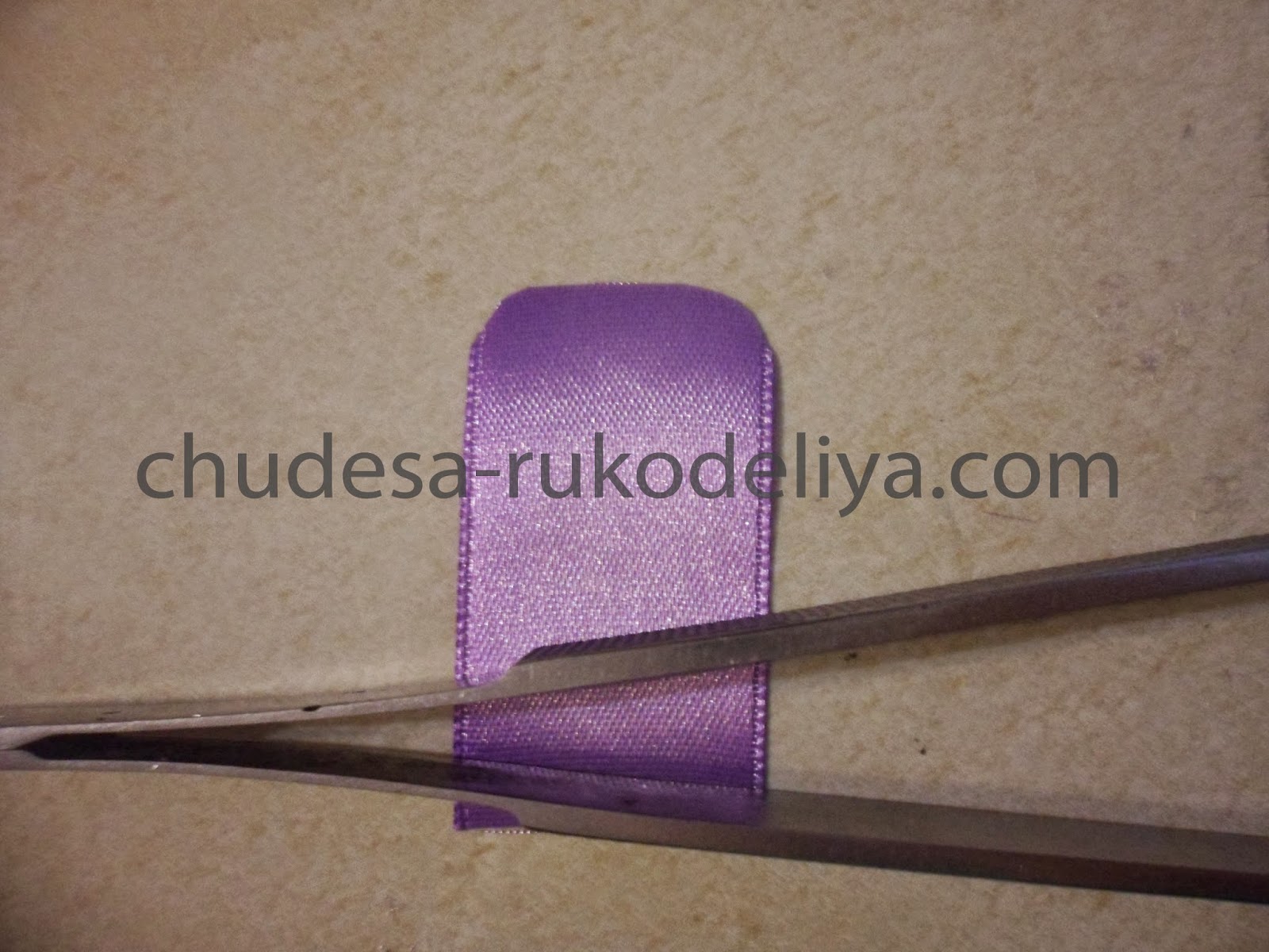Для среднего слоя нашей дюшески я выбрала ленту светло-фиолетового цвета длиной 4,5 см-10 шт.