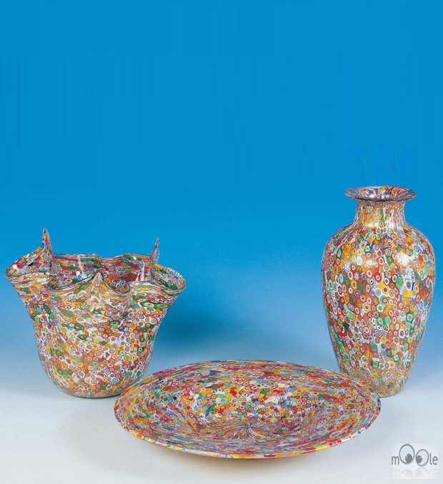 Мозаичное стекло, оно же LA MURINA (ля мурина), оно же MILLE FIORI (милле фьори). Это знаменитый венецианский стиль, который отличает венецианское стекло от любого другого, как Солнце отличает день от ночи.