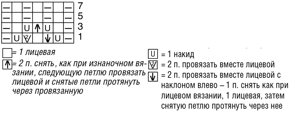 Вязать, как ажурный узор А, но в высоту выполнить 1 раз с 5-го по 8-й р., затем повторять с 1-го по 8-й р.