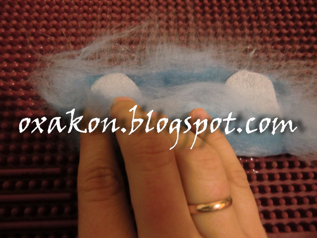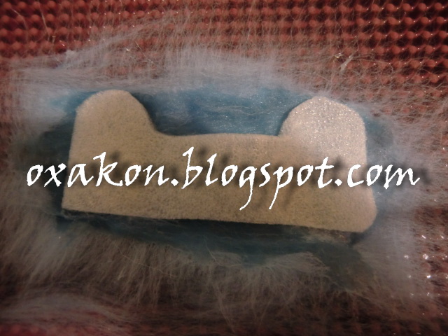 Загибаем припуски шерсти на шаблон, следя, чтоб не было грубых заломов и пропусков, шерстка должна плотно облегать шаблон: