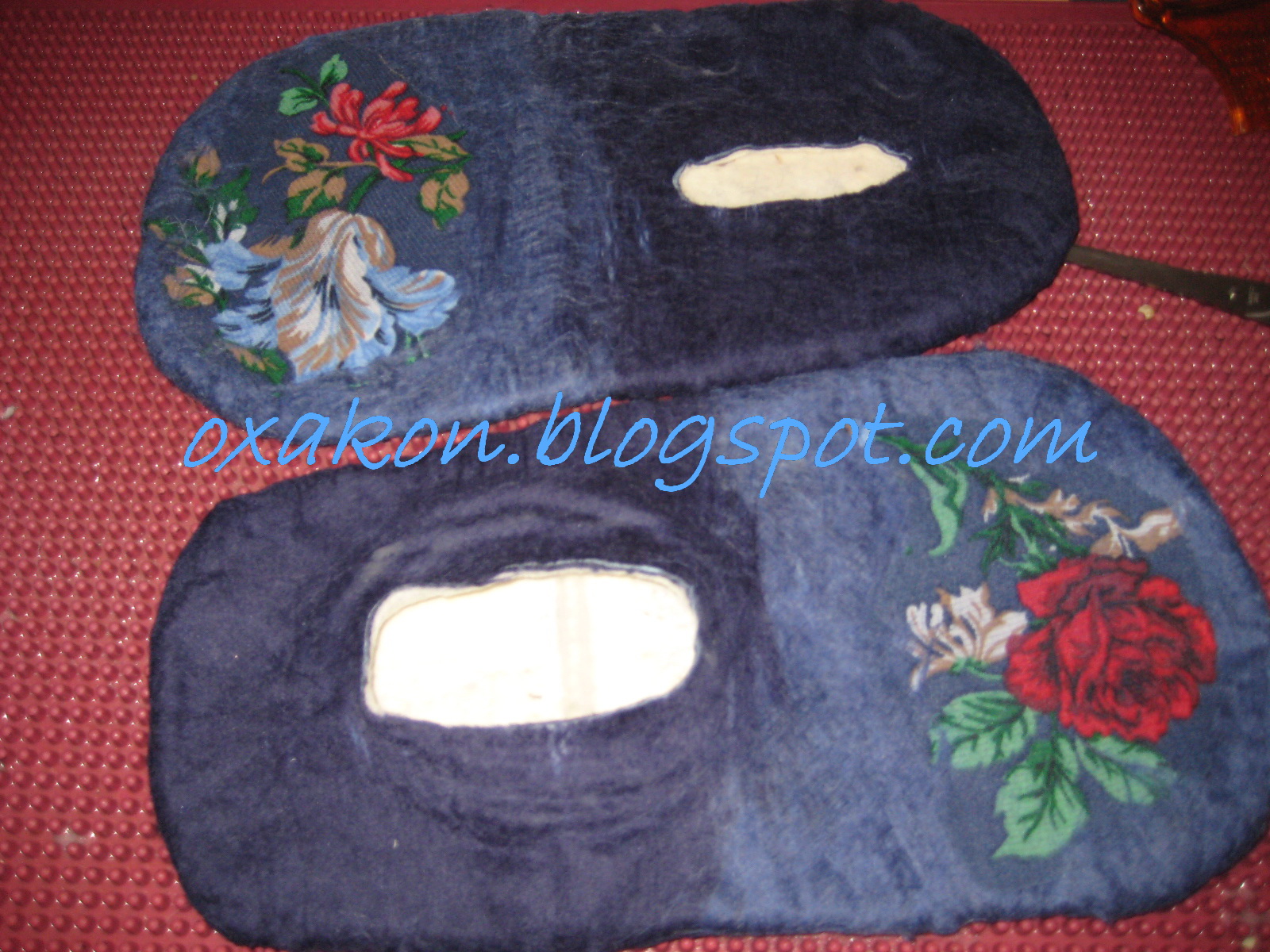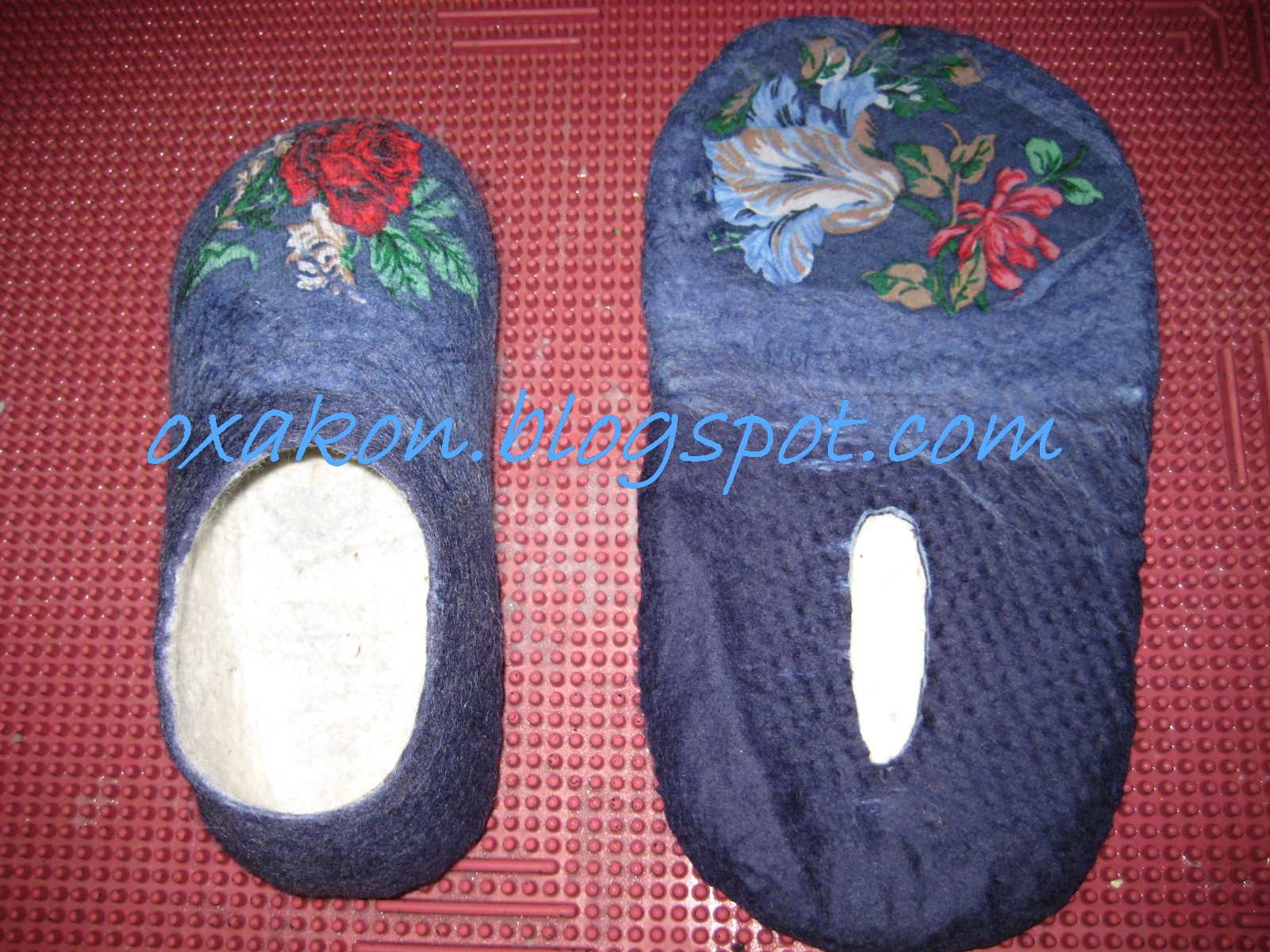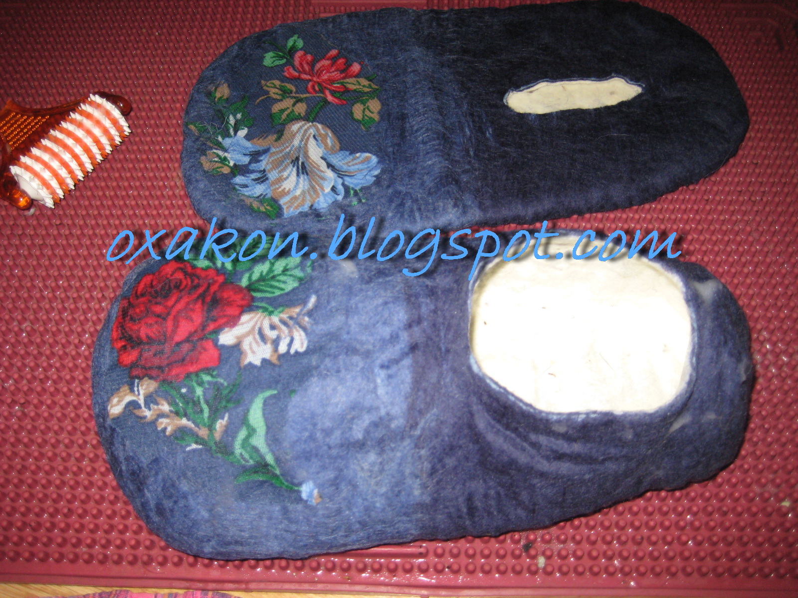 А теперь хочу поделиться с вами, как эти тапочки появились на свет - своеобразный МК. Решила фоткать процесс, мало ли кому-то пригодится, хоть и много в сети гуляет очень хороши мастер-классов от профессионалов.