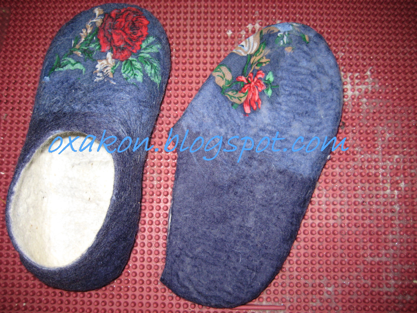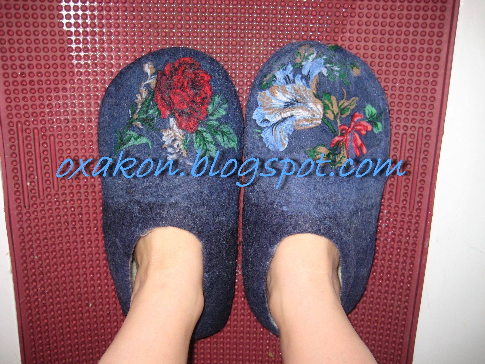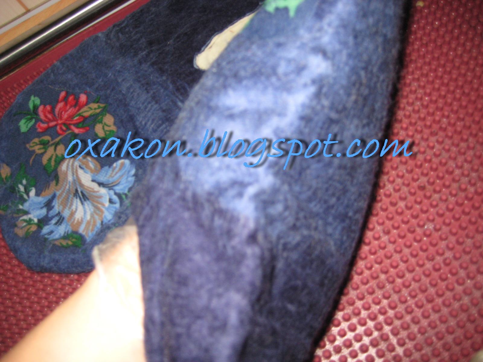 А теперь хочу поделиться с вами, как эти тапочки появились на свет - своеобразный МК. Решила фоткать процесс, мало ли кому-то пригодится, хоть и много в сети гуляет очень хороши мастер-классов от профессионалов.