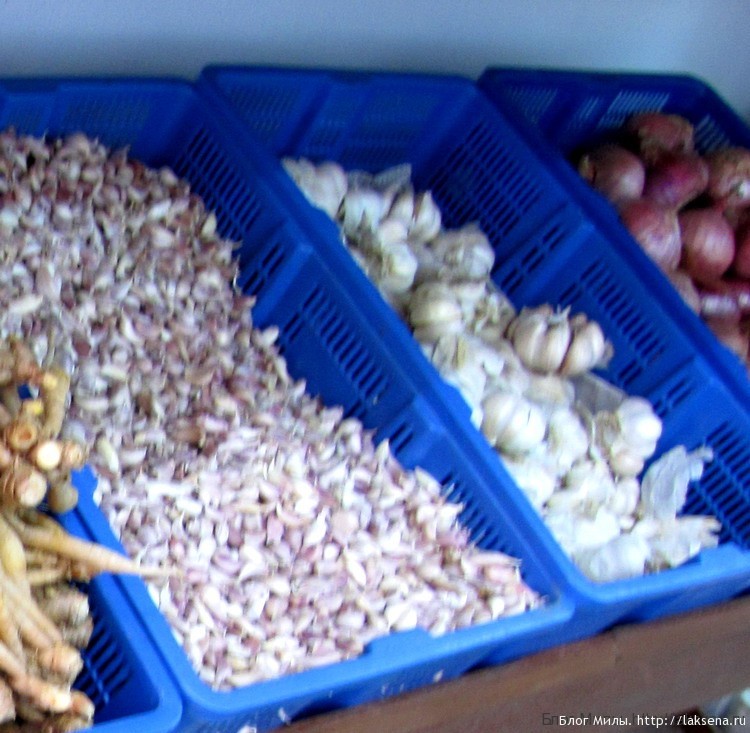 Также широко используется и лук. Эти маленькие красные луковицы являются очень важным ингредиентом большинства блюд тайской кухни. Тайский красный шалот мельче европейского и имеет скорее фруктовый, чем острый луковый вкус.